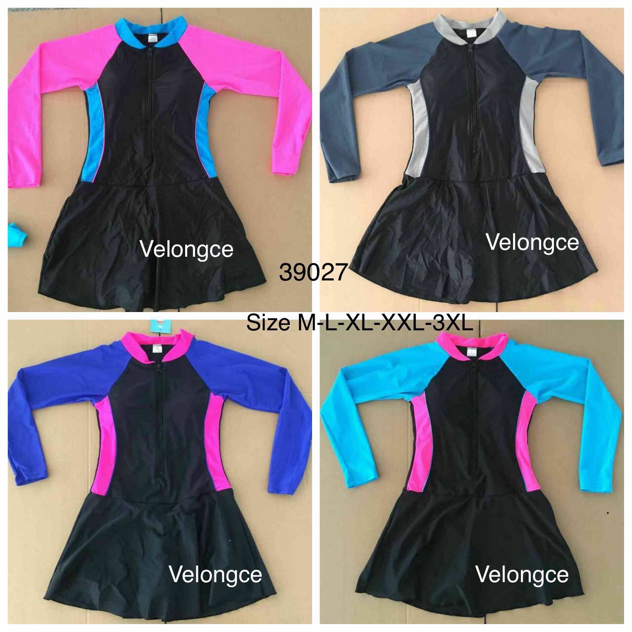 รุ่น 39027 ชุดว่ายน้ำผู้ใหญ่ ชิ้นเดียวแขนยาวกระโปรง ด้านในเป็นกางเกงขาสั้น size M-L-XL-XXL-3XL