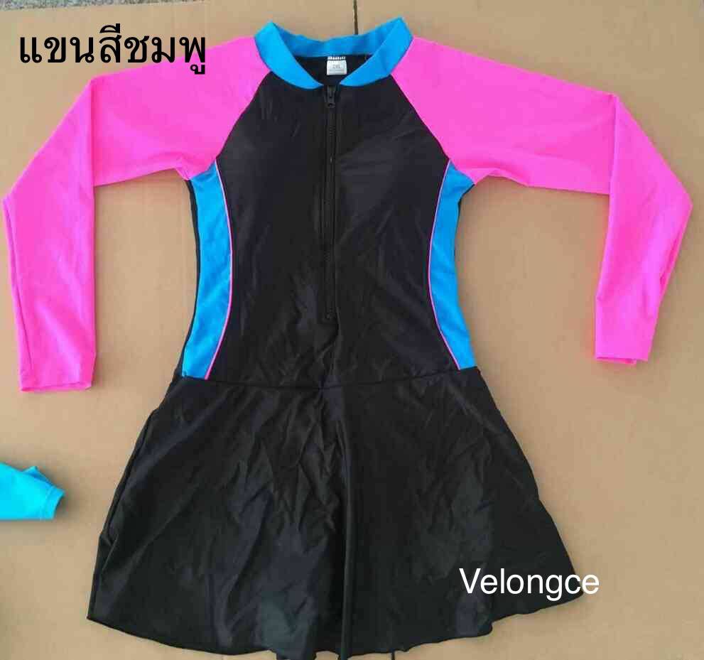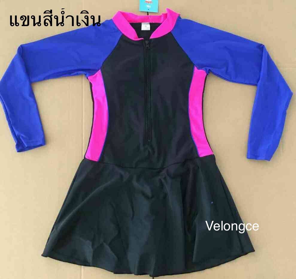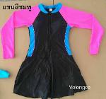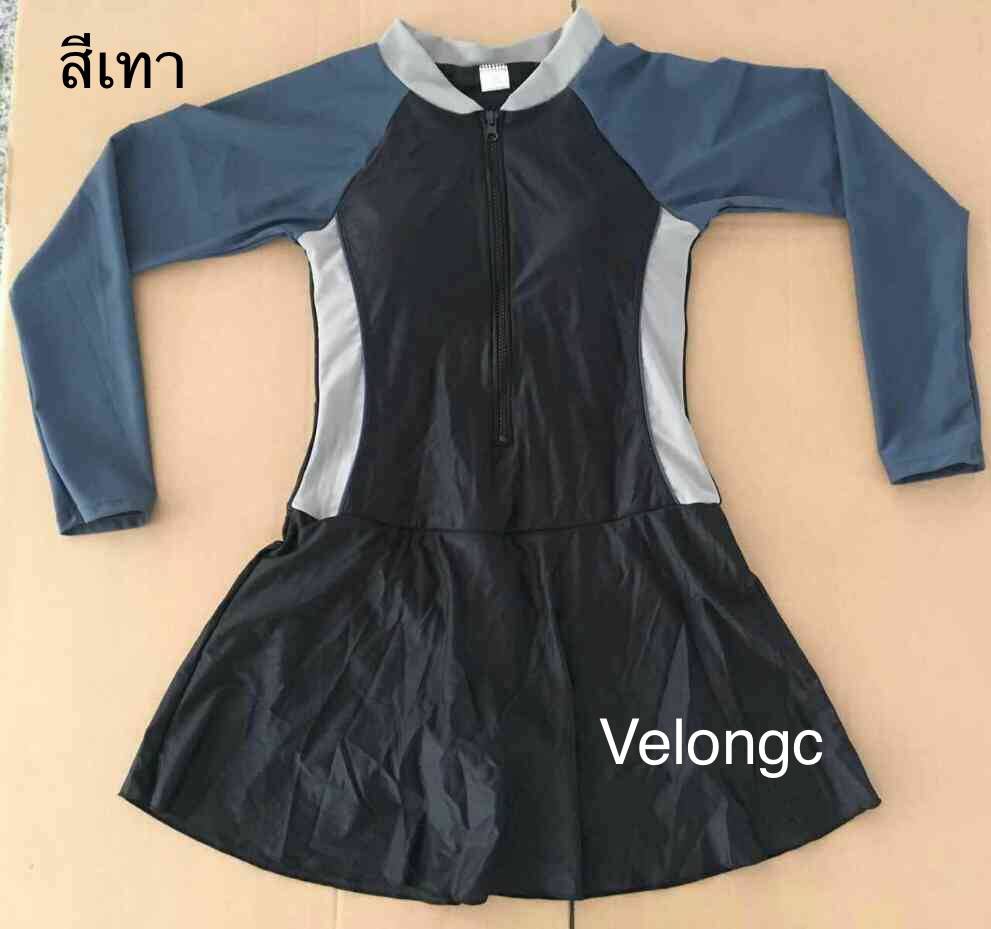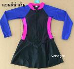 ชุดว่ายน้ำผู้ใหญ่ ชิ้นเดียวแขนยาวกระโปรง ด้านในเป็นกางเกงขาสั้น