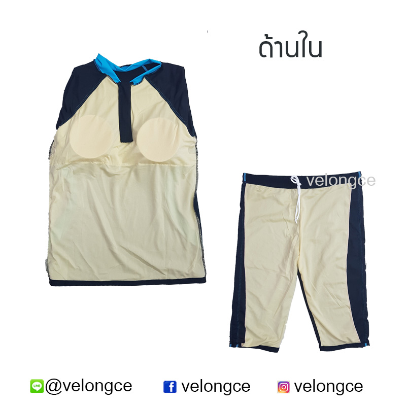 ด้านในมีซับในด้านหน้าทั้งเสื้อและกางเกง มีฟองน้ำให้สำหรับผู้หญิง