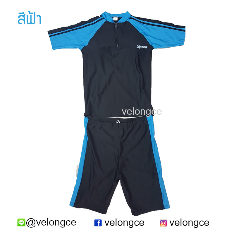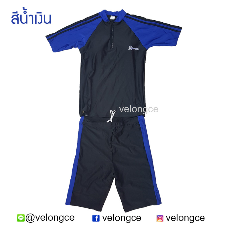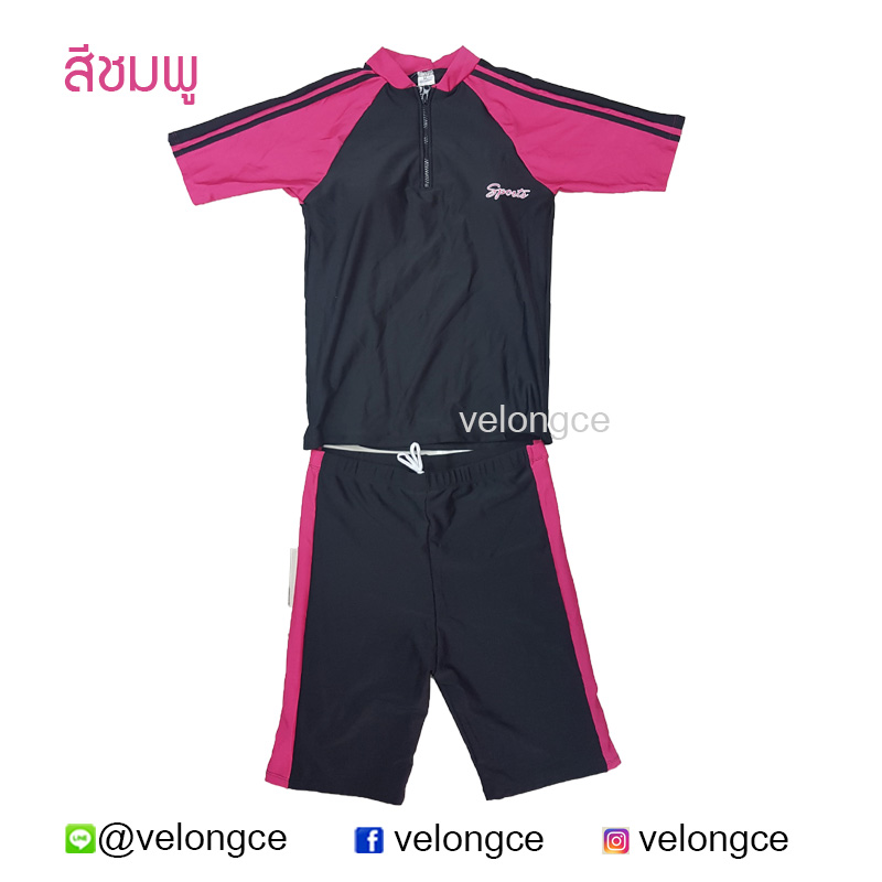 มีซิบที่เสื้อช่วงคอ และกางเกงขาสั้นประมาณเข่าหรือเหนือเข่า