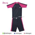 ชุดว่ายน้ำผู้ใหญ่ 2 ชิ้น แขนสั้น ขาสั้น