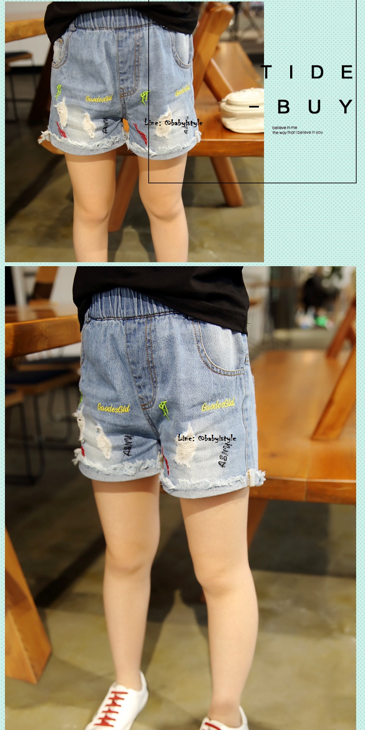 *Sales เด็กโต-กางเกงยีนส์ขาสั้นชายปล่อยพับ ปักลายเส้นหัวใจ ขอบเอวยางยืด มีไซส์ 140 รหัส KKK689