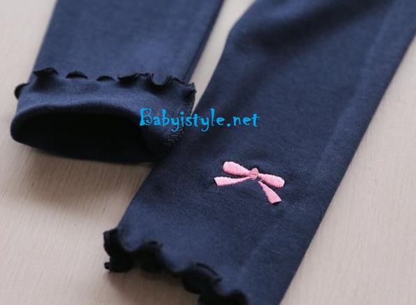 เลกกิ้งขายาวสีกรมท่า ปักโบว์ที่ปลายขา งานสวยน่ารักค่ะ ไซส์ 7/9/11/13/15