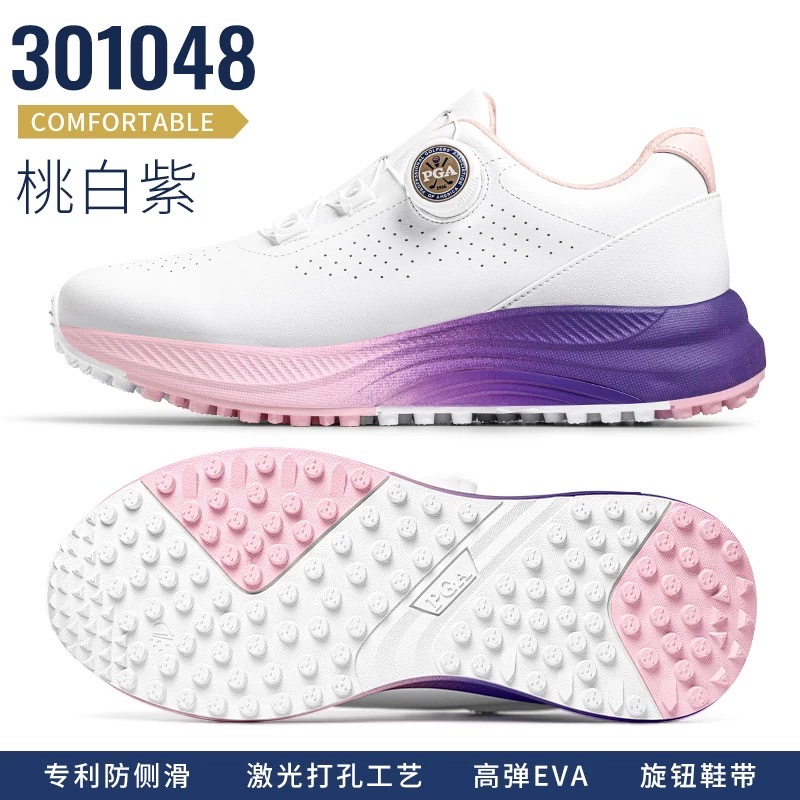 PGA GOLF Golf Shoes Women Waterproof Shoes Swivel Lace Up Sneakers Anti-Slip Spikes