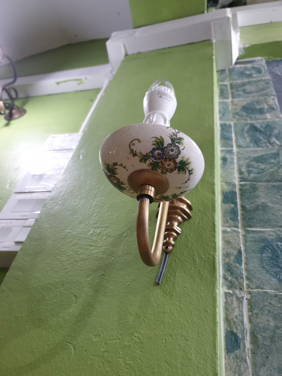 โคมไฟติดผนัง ก้านทองเหลือง ถ้วยกระเบื้องวาด รับผลิตโคมไฟทองเหลืองตามแบบ สนใจสินค้าติดต่อสอบถามได้ที่ Tel : 02-570-1987 sale 061-509-5337 , ฝ่ายแบบ 065-551-5945
