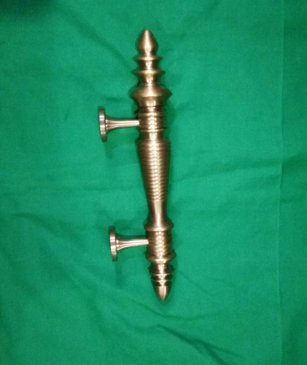 Brass door handle Item Code AC.025A size long 445mm.wide 70 mm.H under 60mm.Base 54mm.