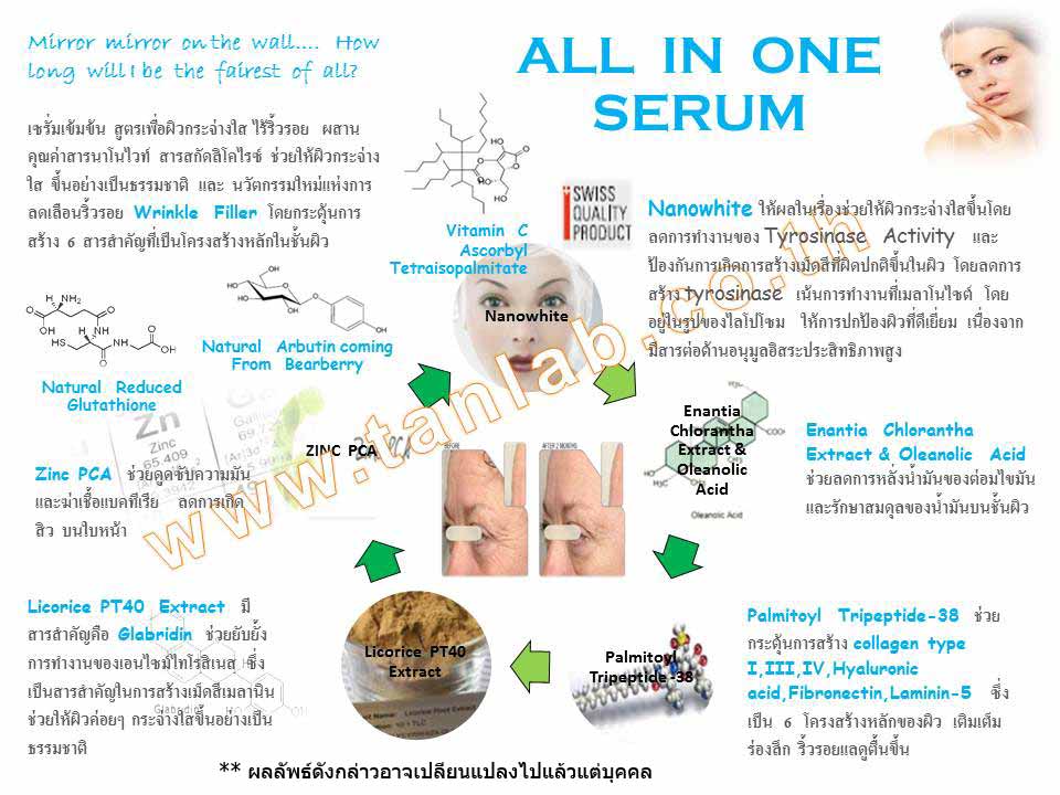 ผสาน 4 สาร WHITENING คือ GLUTATHIONE, VITAMIN C, ARBUTIN, LICORICE ช่วยให้ผิวกระจ่างใสขึ้น ควบคุมความมันตั้งแต่ต้นเหตุ ด้วย Enantia Chlorantha Extract และ Zinc PCA ช่วยให้ผิวกระชับ ริ้วรอยแลดูตื้นขึ้นด้วยปฏิบัติการฟื้นฟูผิวด้วยกลไก 6 ประการ ให้ผิวห