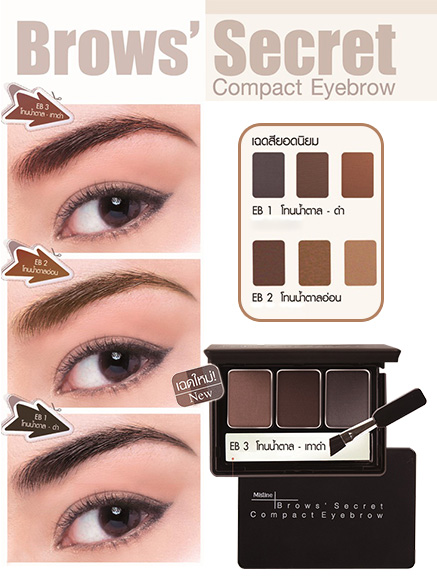 ใน 1 ตลับมี 3 สี ให้สีสันกลมกลืนเป็นธรรมชาติ พร้อมพู่กันพิเศษปลายตัด ที่ออกแบบเพื่อการเขียนคิ้วโดยเฉพาะ