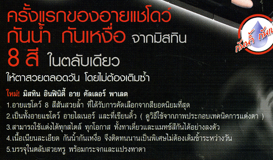 อายแชโดว์ เนื้อละเอียด เนียนนุ่ม ติดทนนาน มีพร้อม สีในตลับเดียวกัน