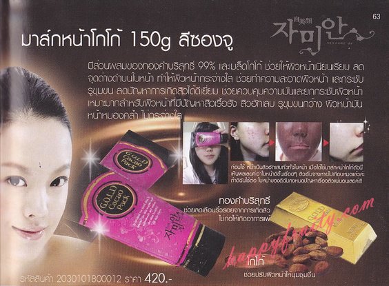 **Gold Cacao Pack เป็นผลิตภัณฑ์ที่กำลังโด่งดังในสื่อทีวีของเกาหลี และใต้หวันในขณะนี้