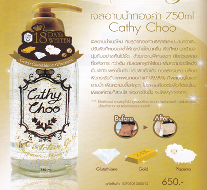 เจลอาบน้ำทองคำ ทำความสะอาดผิวกายให้กระจ่างใส มีส่วนผสมระหว่าง ทองคำ 24K กลูต้าไธโอน และรกแกะ ทำความสะอาดผิวกายให้กระจ่างใส บำรุงผิวเนียนนุ่มชุ่มชื่นด้วยสารสกัดจากทองคำบำรุงผิว ช่วยในการไหลเวียนของเลือดได้ดี ผิวขาวเนียนกระจ่างใสใน 18 วัน