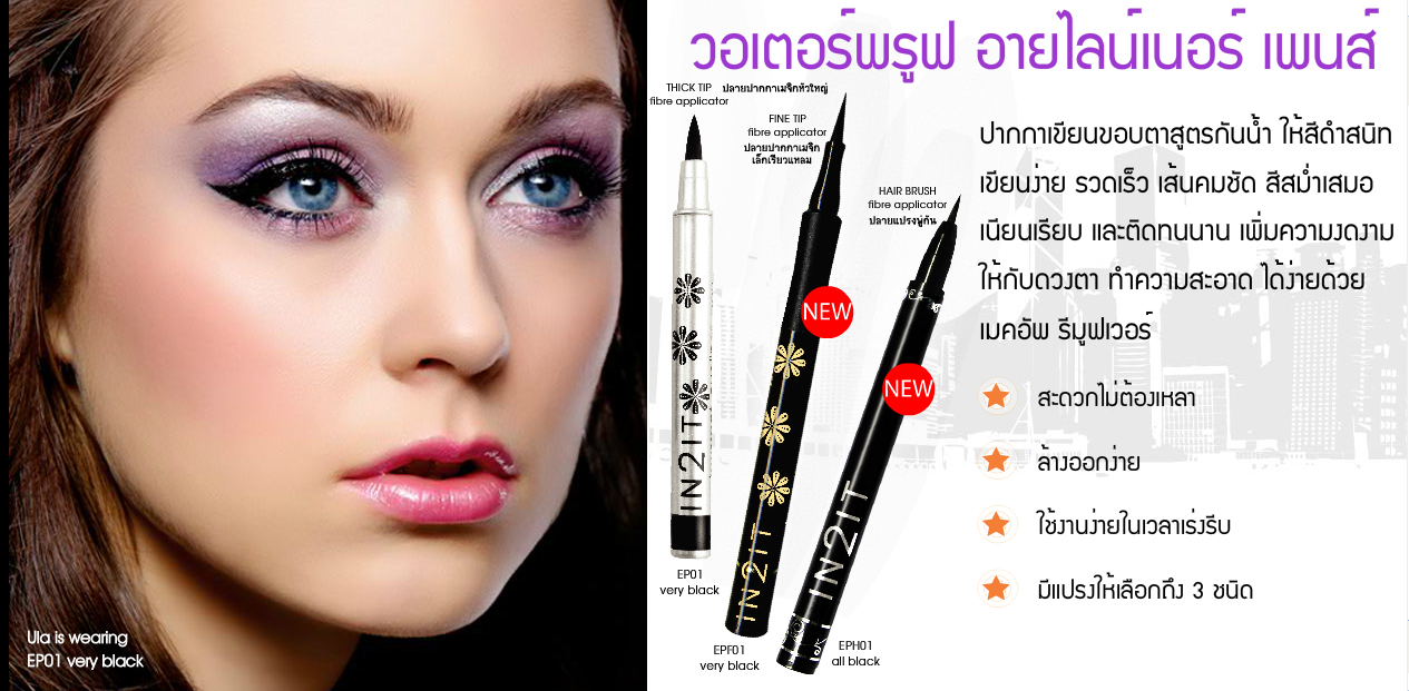 IN2ITwaterproof eyeliner pens EP01 ปลายปากกาเมจิกหัวใหญ่