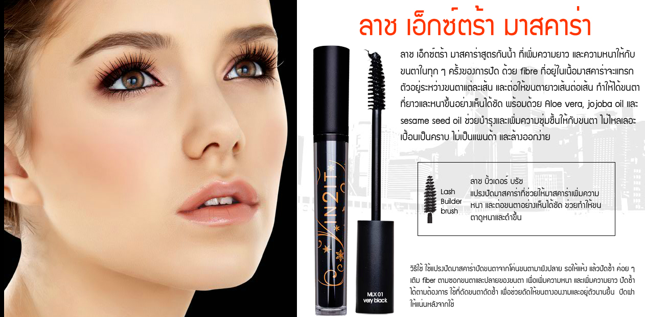 Lash Xtra mascara อินทูอิท ลาช เอ็กซ์ตร้า มาสคาร่า ลาช เอ็กซ์ตร้า มาสคาร่า ผลิตภัณฑ์ตกแต่งขนตา สูตรกันน้ำ มีสารบำรุงขนตา และ fibre ช่วยเพิ่มความหนา และต่อขนตาให้ยาวขึ้น อย่างเห็นได้ชัด ราคาเพียง 175 บ.เท่านั้น