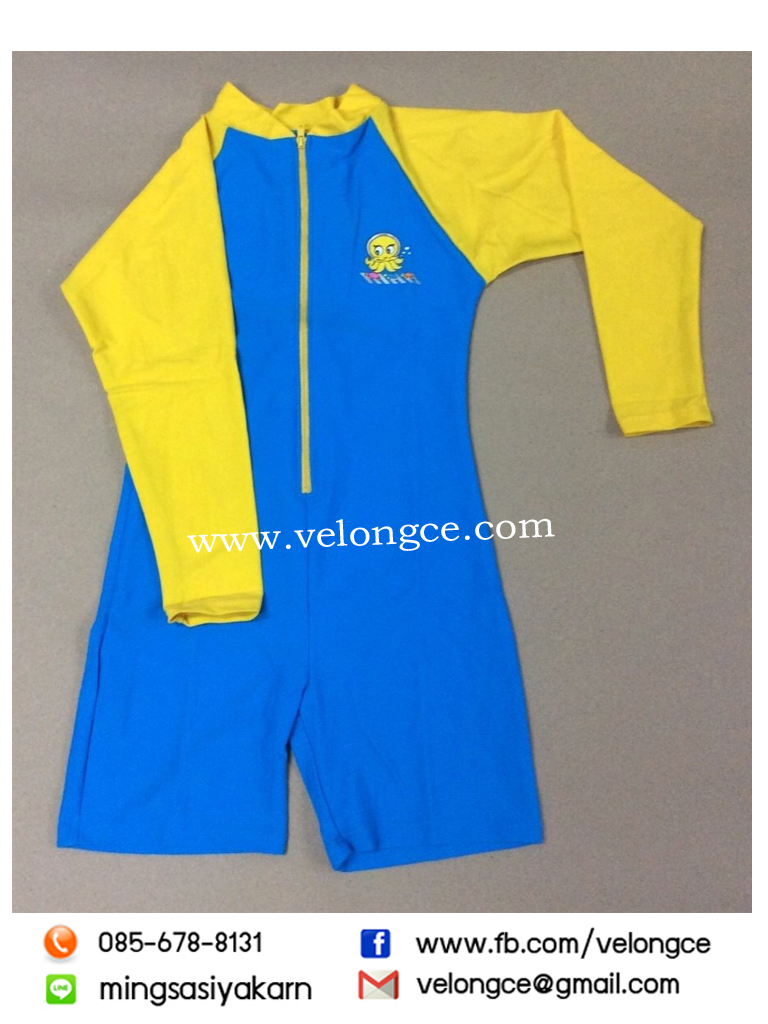 LL026 ชุดว่ายน้ำเด็กแขนยาว ขายาว 2 ชิ้นลายลิง Size S-M-L-XL-XXL สีฟ้า น้ำเงิน เหลืองและกรม