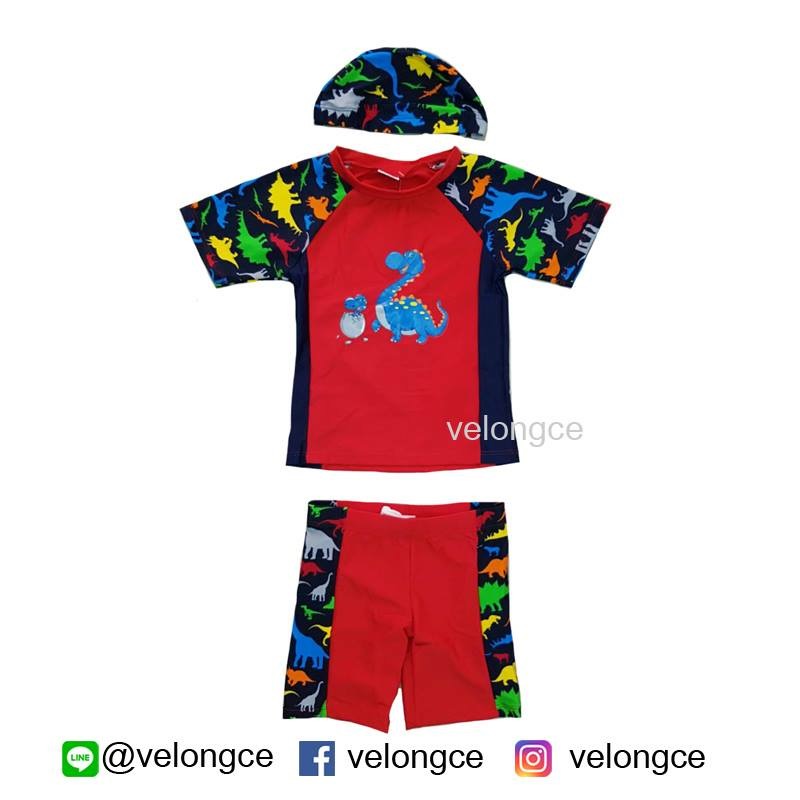 ชุดว่ายน้ำเด็ก 2 ชิ้น 58020 แขนสั้น ขาสั้น ลายไดโนเสาร์ size S-M-L-XL-XXL