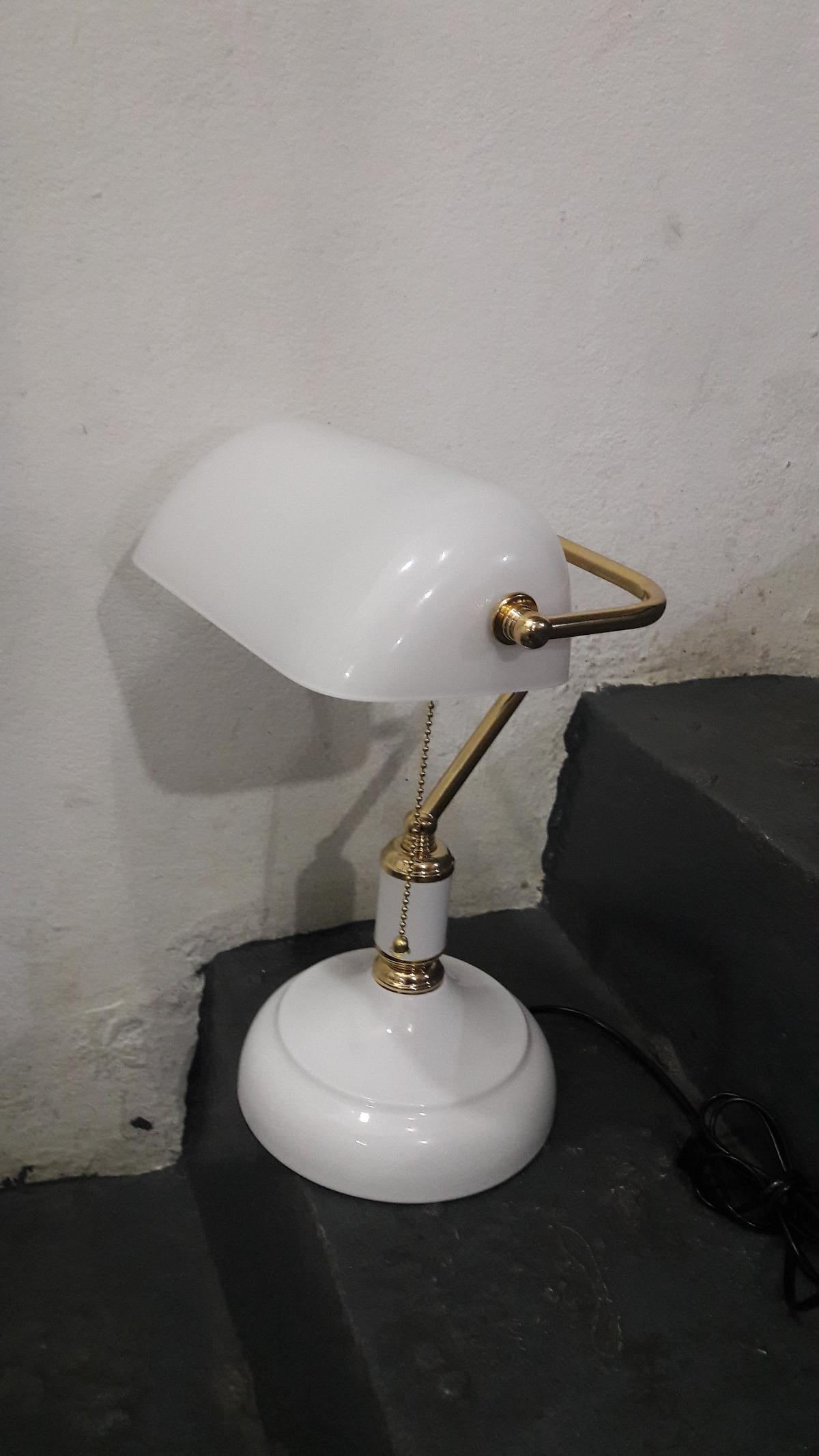 Brass desk lamp size high 42 cm. shade wide 23.5 cm.