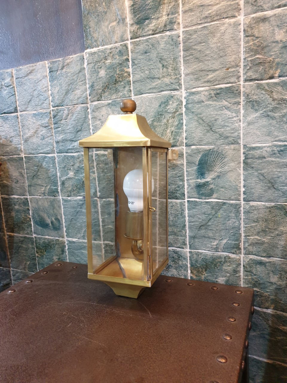 Brass Wall lamp with clear glass Item Code WL504 size base 100 mm.deep 220 mm.long 300 mm.wide 100mm