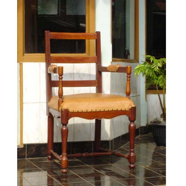 Arm chair teak wood with leather