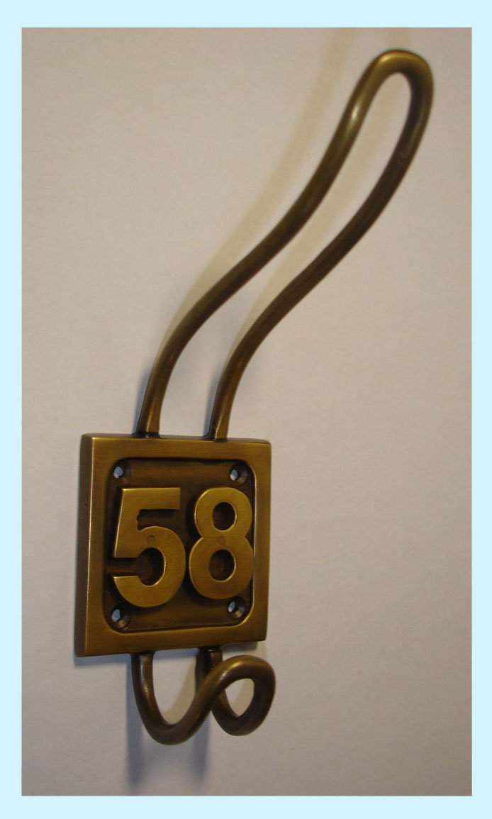 Brass hook Item Code Code.A10B size base 70 x 32 mm. long 125 mm.