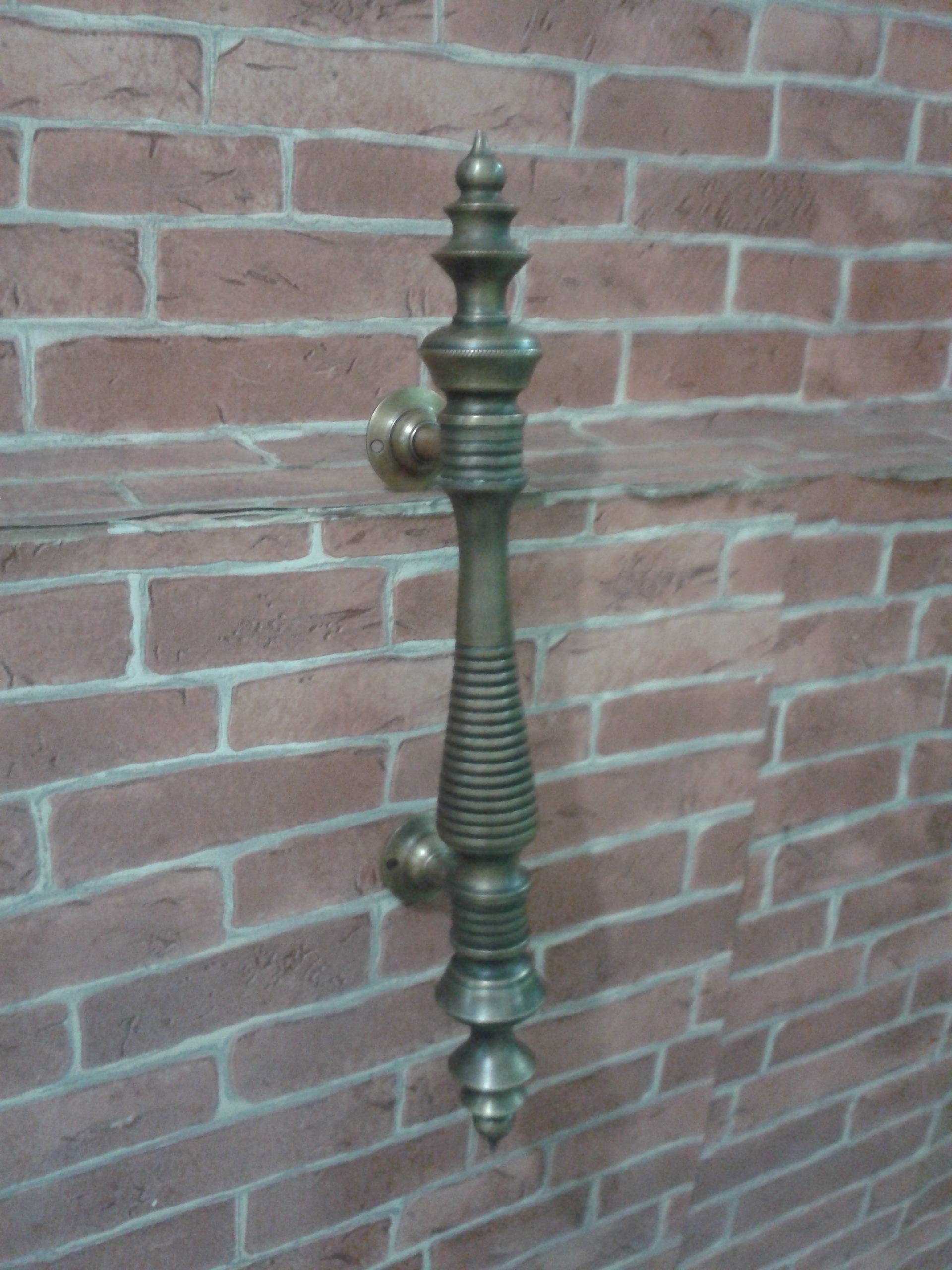 Brass door Handle Item code AC.053 size Long 50cm wide 38 mm head D: 79 mm.