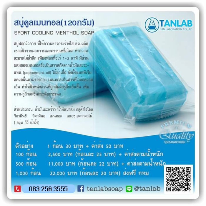 80 กรัม ขั้นต่ำ 1,300 ก้อน/การผลิต