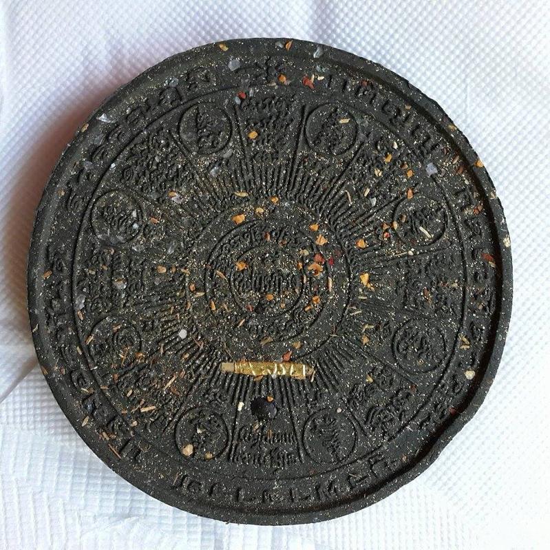 พระผงปิดตาพังพะกาฬ จตุคาม รามเทพ รุ่นสมบัติจักรพรรดิ์ ปี2549 เนื้อดำปัดบรอนซ์ทอง มีรอยกระเทาะ สภาพตามรูป มีโค๊ดมีเลขประจำพระ4654 ขนาดเส้นผ่านศูนย์กลาง 5 เซนติเมตร ไม่มีกล่องเดิมครับ