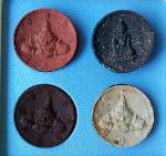 พระสวยไม่ได้ใช้เลย จมูกโด่งไม่มียุบ เหรียญมหาปราบ เนื้อตะกั่ว ขนาด 4 ซ.ม. พร้อมกล่องเดิม ราควัด 4,000 บาท ผมเช่ามาเองจากวัดและนำไปให้พระอาจารย์โชติท่านจารเพิ่มให้ ข้อมูลจากศิษย์ใกล้ชิดบอกว่าเป็นเนื้อที่มีมวลสารตะกรุดเก่า, เหรียญเก่า, และผสมหัวตะกั่วลูกปืน