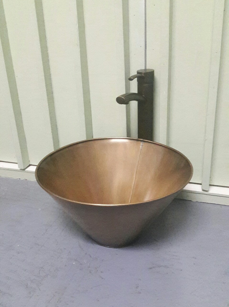 อ่างทองแดง ทรงกรวย หนา 2 มิล งานมัวนมือ สีทองแดงด้าน รับผลิตอ่างทองแดงตามแบบ สนใจสินค้าโทรสอบถามได้ที่ Tel/fax : 02 942 1911,02 570 1987 sale 061 509 5337,084 850 6680,092 512 3047