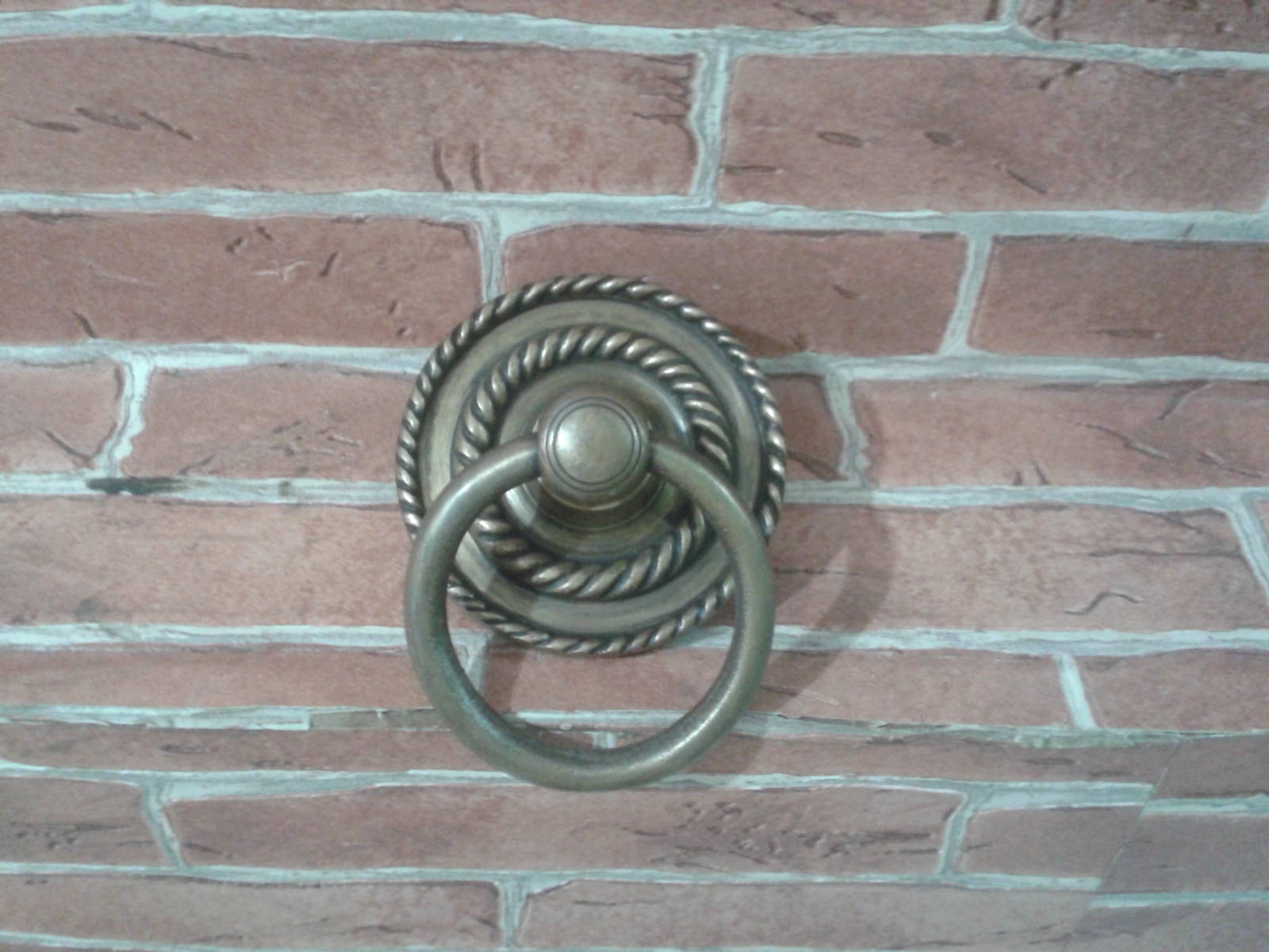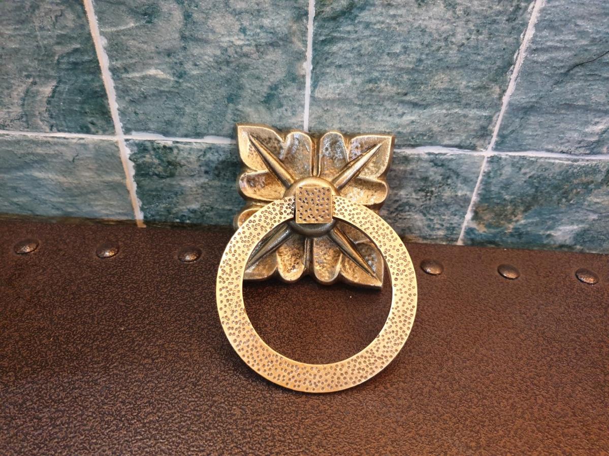 Brass Door Handle Item code P.080 size base wide 97 mm. ring 77 mm.