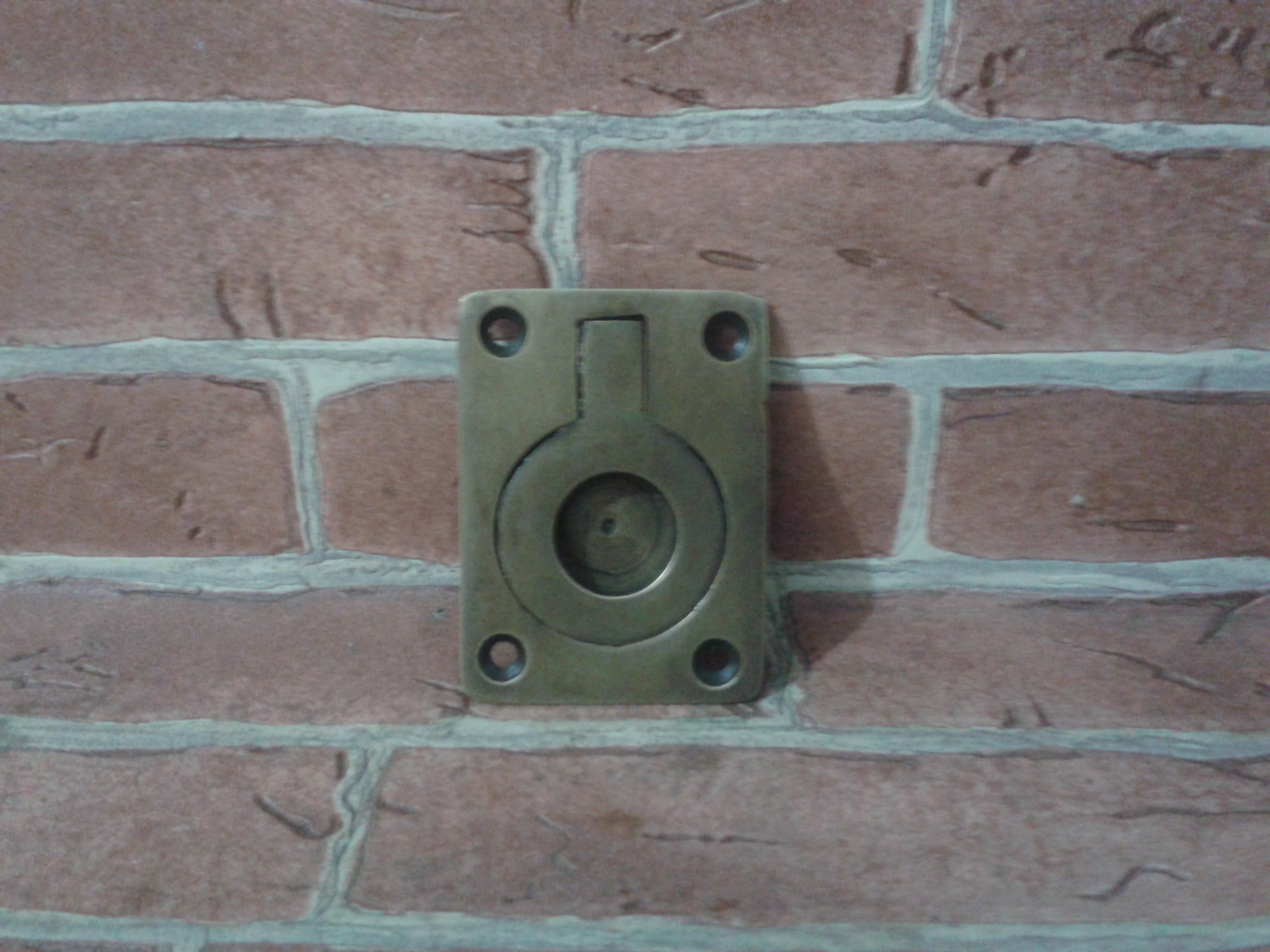 Brass Door Handle Item code PF93 size 92 x 93 mm.ring W: 100 mm.flat bar12 mm.