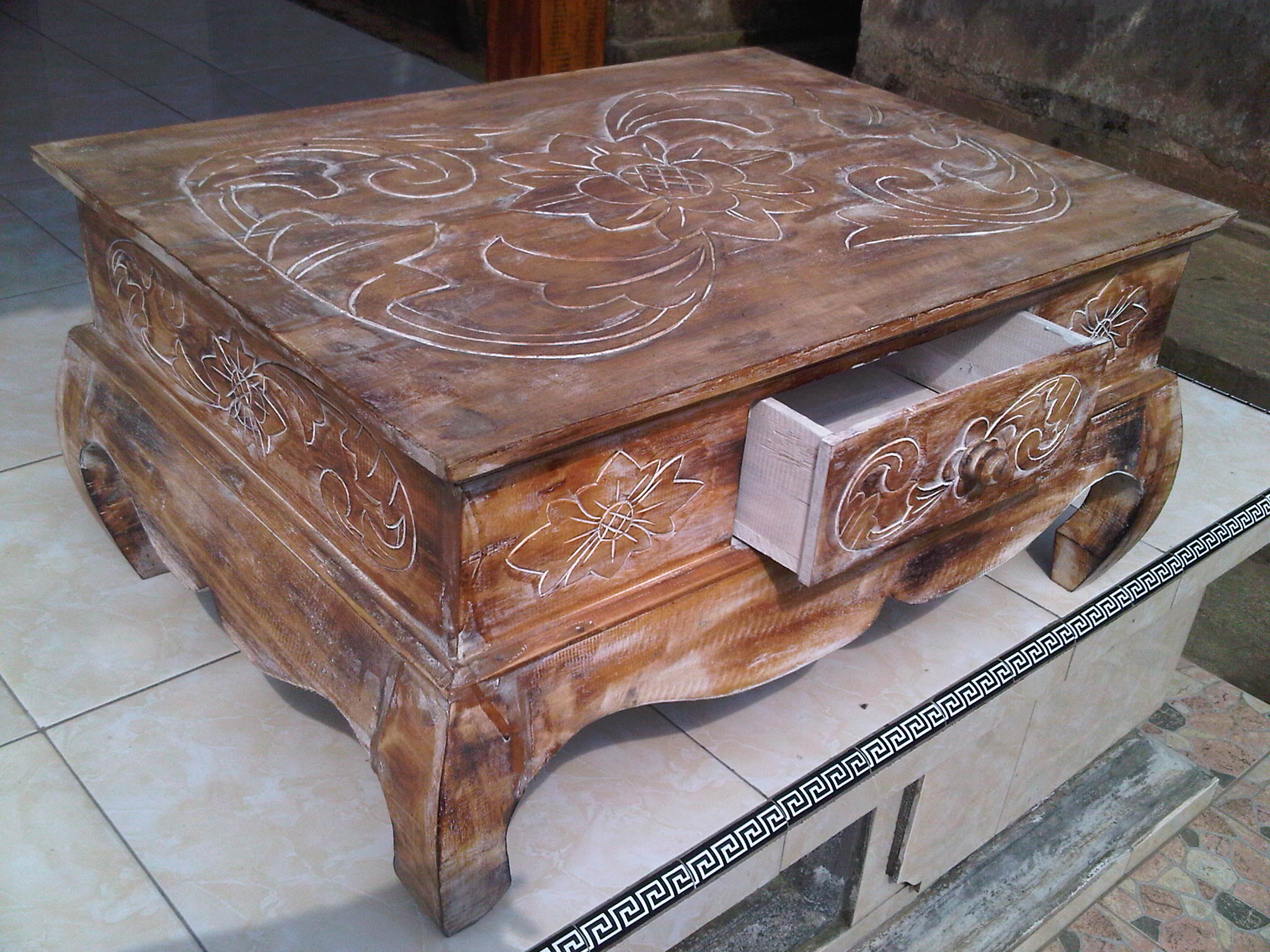 โต้ะทานข้าว ไม้สัก ท็อปหินอ่อนไวท์วีนัส