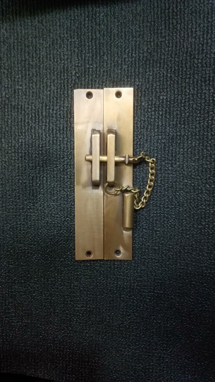 Brass door lock Item Code Q031B size long 150 mm. wide 50 mm.Thickness 3 mm.
