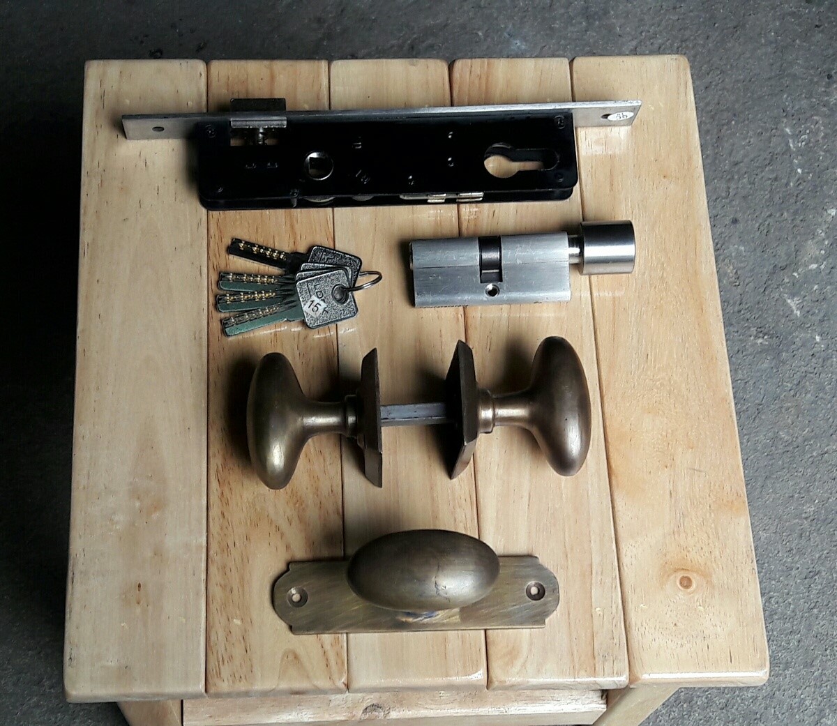 Brass Door Lock Item Code Q.051 size 128 mm wide 89 mm.