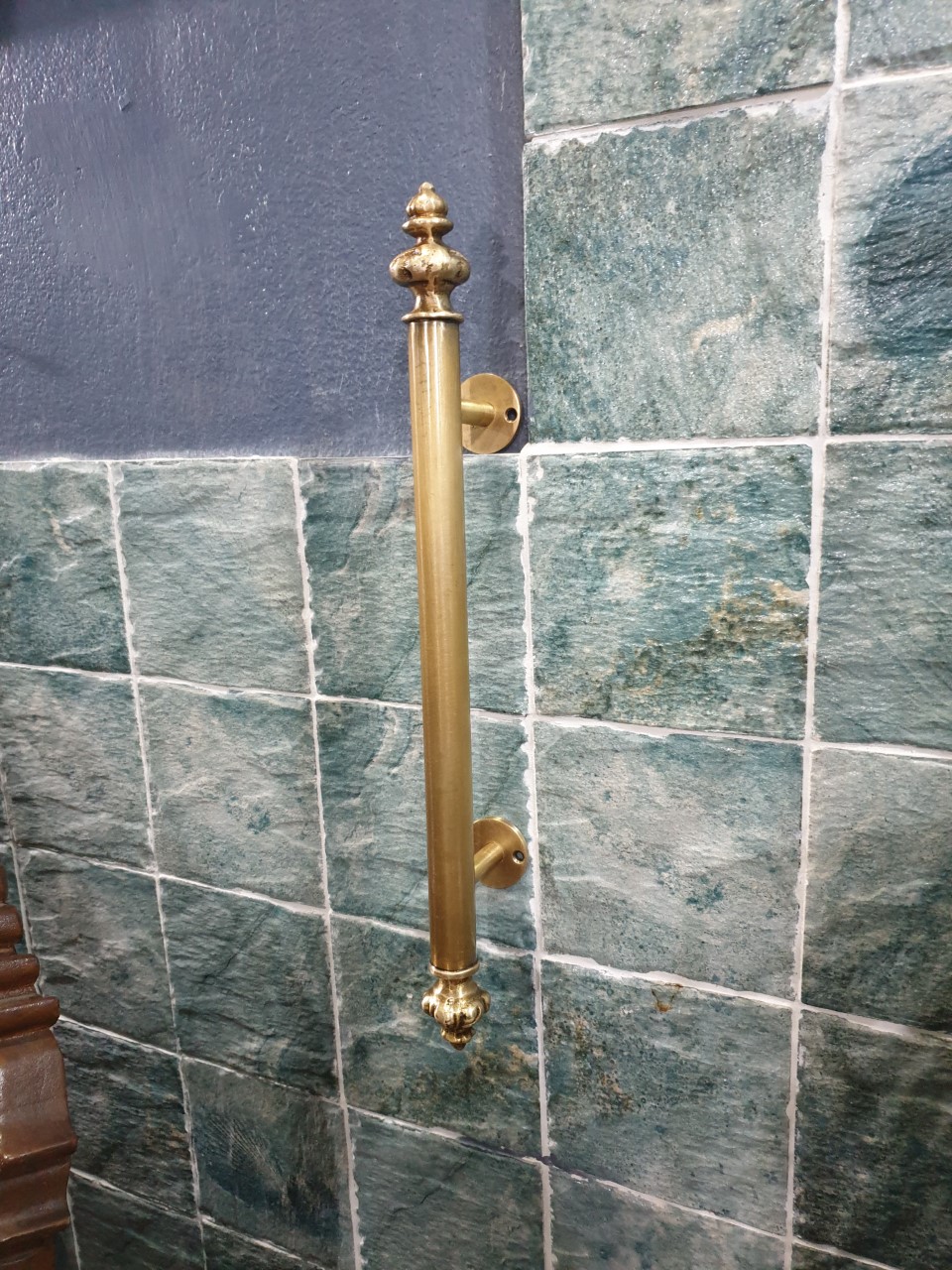 Brass door handle Item Code ACMR18 size long 300 mm. diameter 25 mm. high 50 mm.
