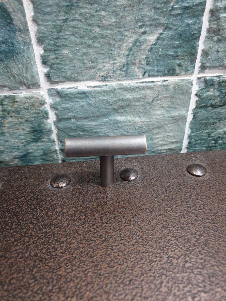 Brass door handle Item Code C04MR size L 140 mm. D 9mm head 15 mm.leg wide 23 mm. H total 30 mm.