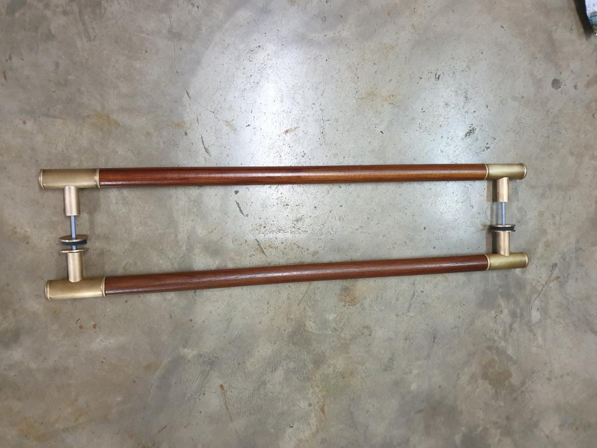 Brass Door handle brass with teak wood Item Code ACTL63A size long 2000 mm. head 50 mm.