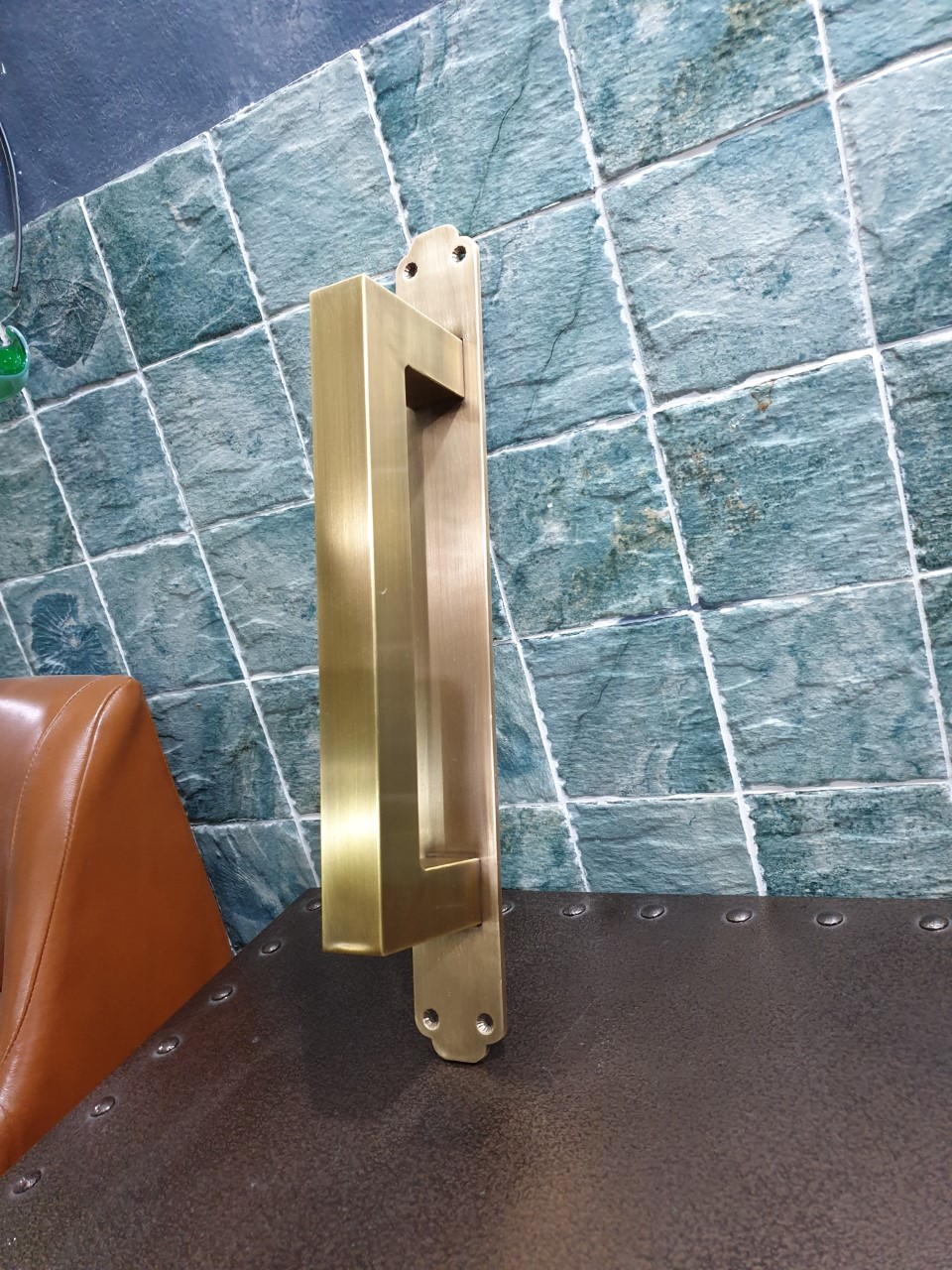 Brass Door Handle Item Code A50MR size plate 50 x 432 mm.thickness 3 mm. handle 32x32mm